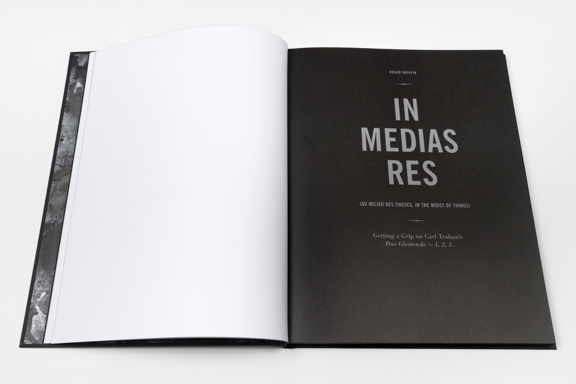 Carl Trahan. Das Gleitende — 1, 2, 3 traite d’une série d’expositions présentées entre 2017 et 2019 au MAC LAU et à la Galerie Nicolas Robert. Il comporte deux essais, écrits par Roger Griffin et Marie Lavorel, qui posent un regard original sur le travail de Trahan et sur les divers thèmes abordés dans cette trilogie. Les textes ont été traduits vers le français et vers l’anglais par Colette Tougas et Bernard Schütze. Le design est de Dominique Mousseau.