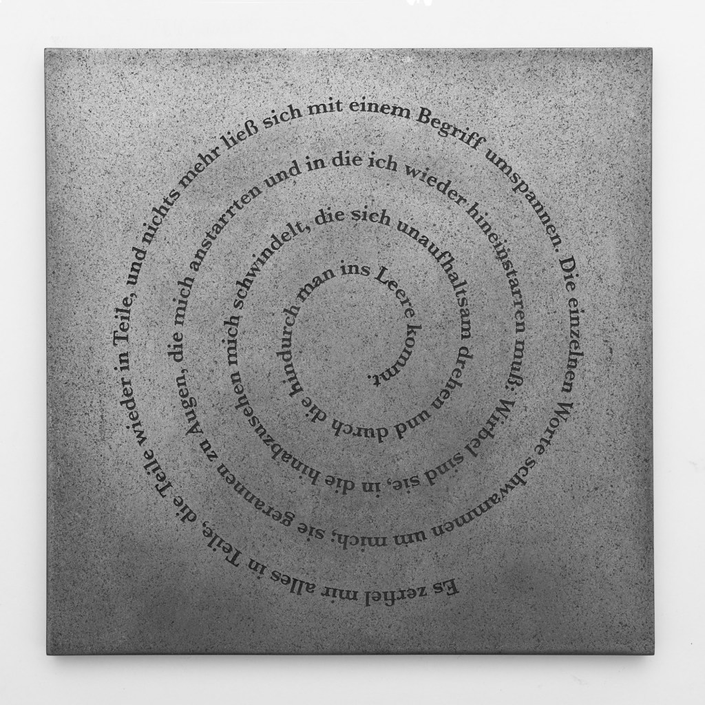 Le texte en allemand — et sa traduction — provient de la nouvelle Ein Brief (Lettre de Lord Chandos) de Hugo von Hofmannsthal, publiée en 1902. Le succès précoce de ce poète autrichien est suivi, dit-on, par une crise morale et intellectuelle et il n’écrit presque plus durant des années. En écho à cette crise, Ein Brief traite de l’insuffisance des mots et du discours traditionnel pour appréhender la réalité.