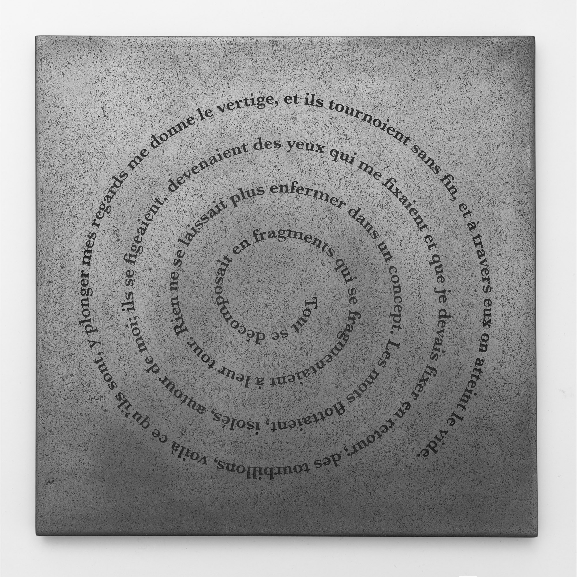 Deux plaques de graphite gravées, 2,54 x 30,5 x x30,5 cm chacune, 2019