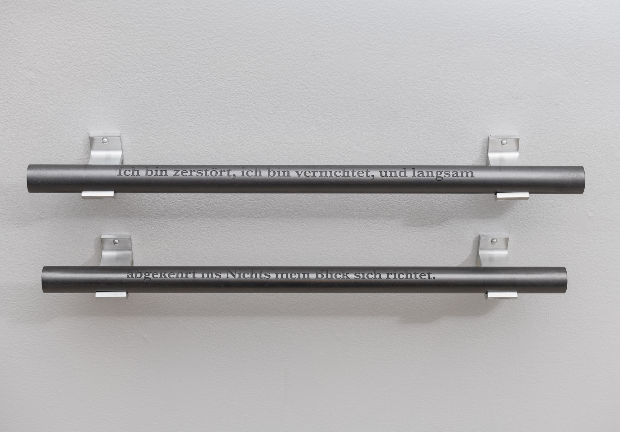 Tiges de graphite gravé et aluminium, 25 x 62 x 7 cm, 2019
