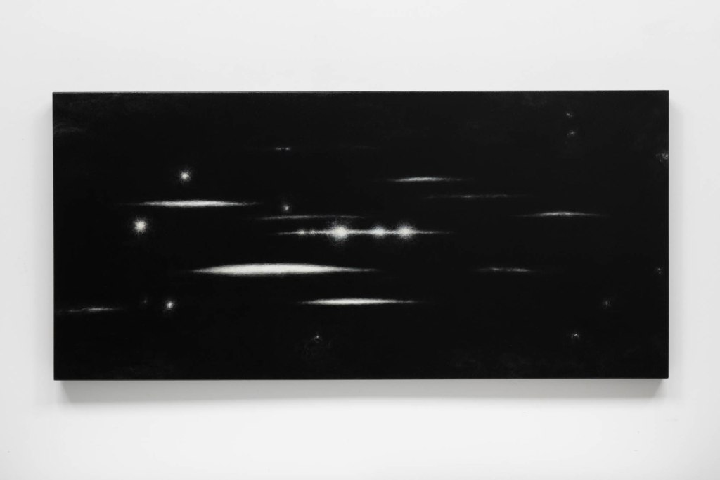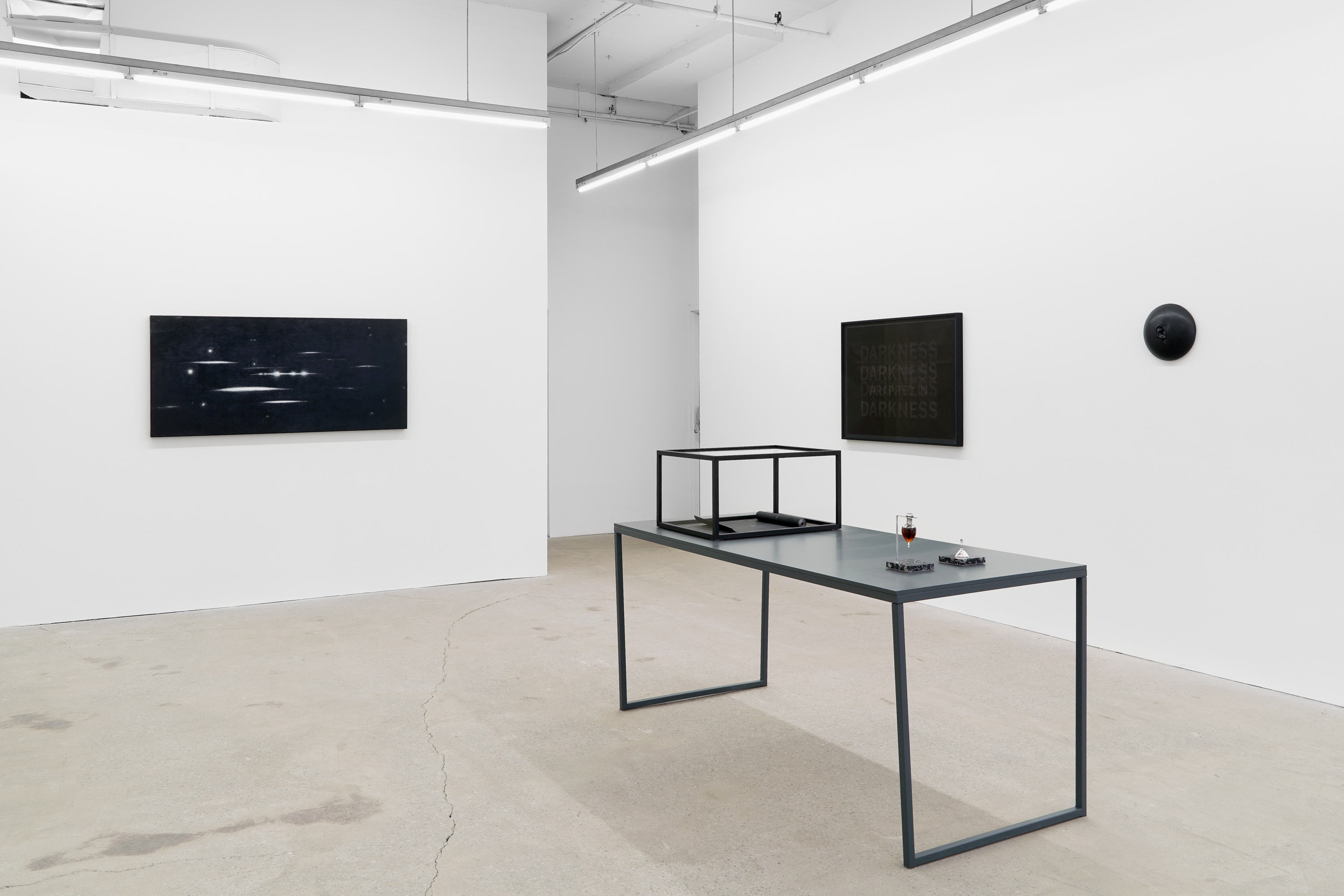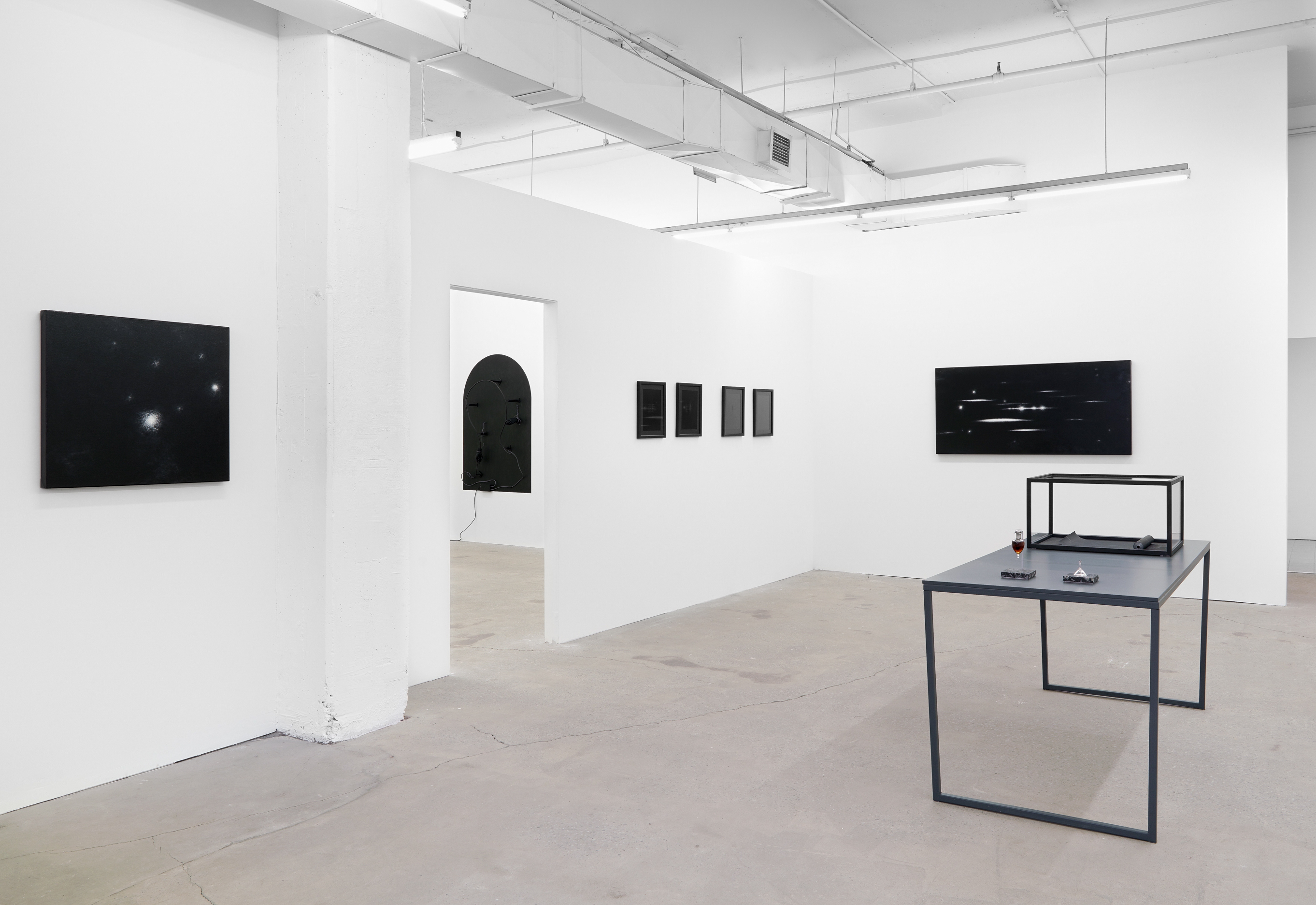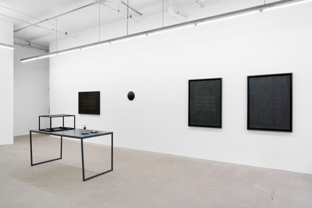 Sur les cendres des astres is Carl Trahan’s most recent body of work in which he continues his reflections around the writings of philosopher Eugene Thacker. Using drawing, painting, sculpture, and olfactory art, the artist evokes a Thakerian world-without-us, a world that could both predate and follow our presence on this planet we call Earth, in a cosmos that is indifferent to our existence. Through the various works of the exhibition, Carl Trahan suggests we may find this world–which is now possible to conceive as the spectre of extinction hovers above us–in the figure of the night, in nihilism and in dark mysticism.