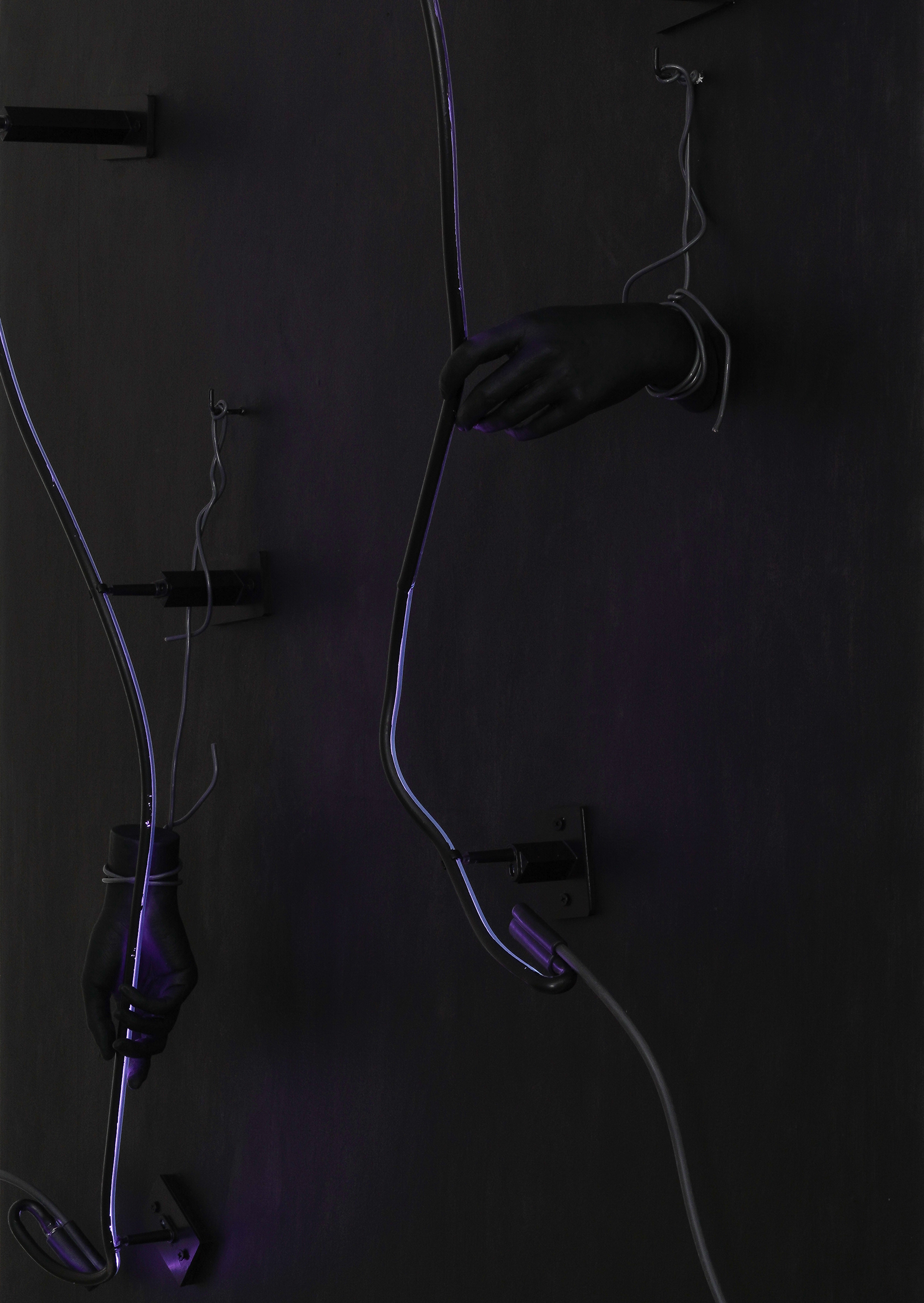 Cristal moulé, fils électriques, enseigne au néon, transformateur, peinture acrylique / Molded crystal, neon sign, electric wires, transformer, 157,5 x 106,7 cm, 2023