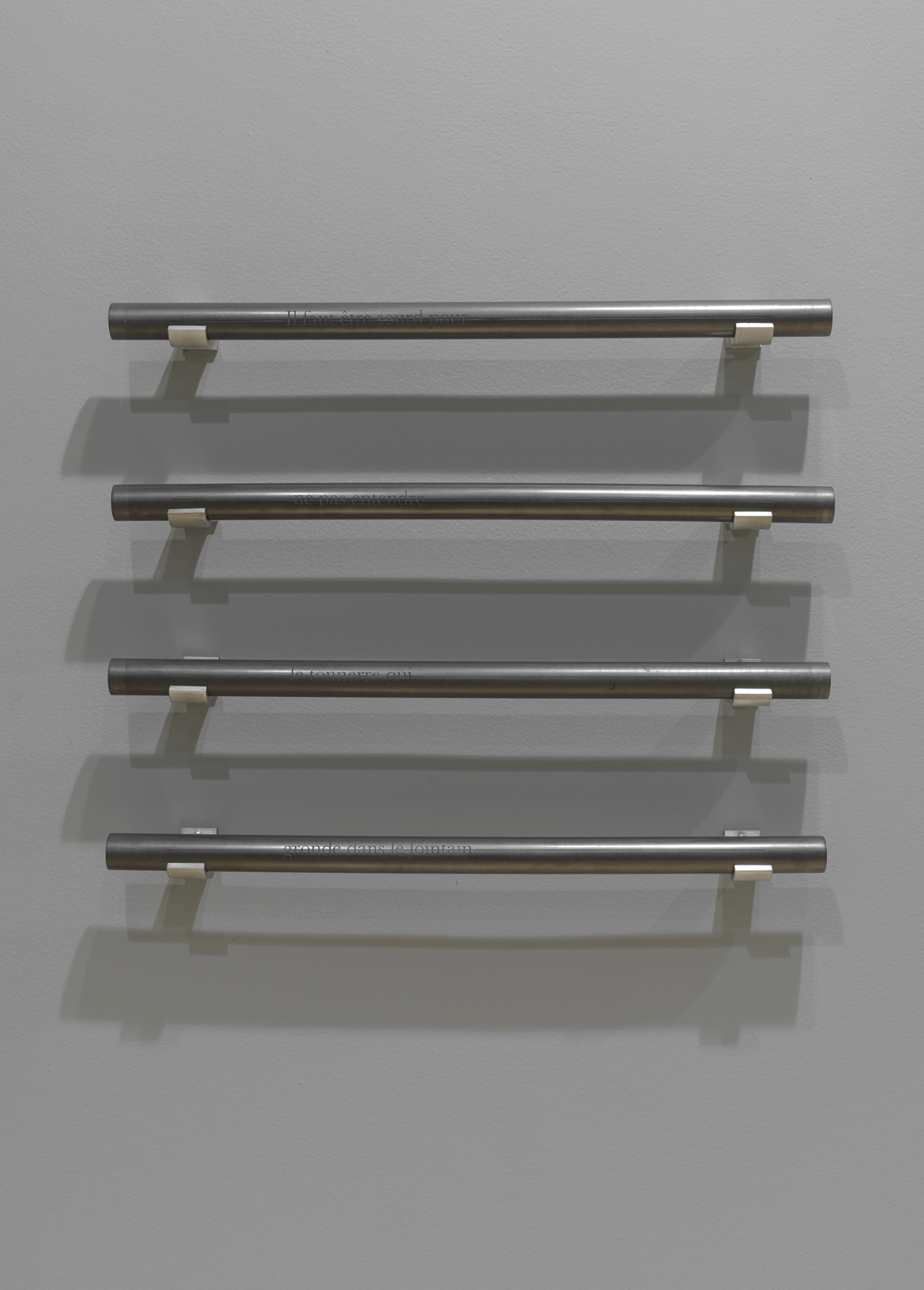 Tiges de graphite gravées et aluminium, 2015, 49 x 62 x 7 cm